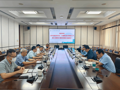 10月16日,调研团前往金华职业技术大学,该校校长梁克东、副校长陈海荣、浙江省教育厅职业教育与成人教育处副处长王博等接待,并就创新团队建设、国际交流合作等内容进行了深入交流。调研期间,米靖一行参观了学校校史馆、产教园,对其办学历程以及深化产教融合、校企合作模式进行了实地考察,充分学习了其优质的经验做法。
