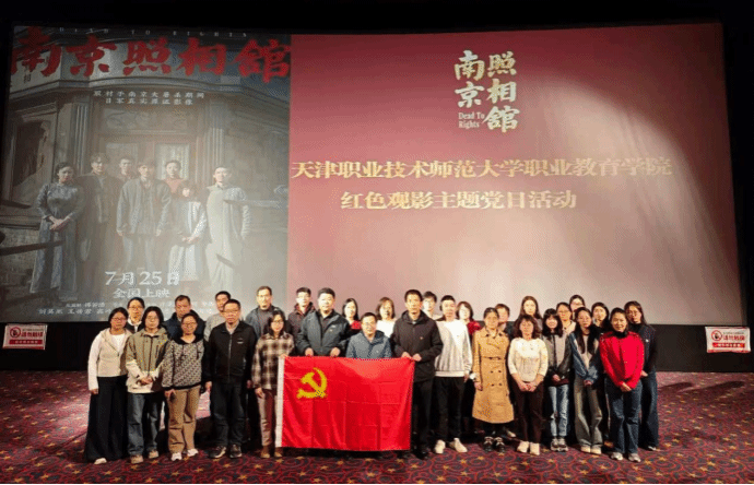本网讯【通讯员:李志婧】10月24日,职业教育学院党委组织全体党员教师和部分学生党员代表,赴左岸国际影城开展“铭记历史守初心,砥砺奋进传薪火”主题党日观影活动,集体观看电影《南京照相馆》。