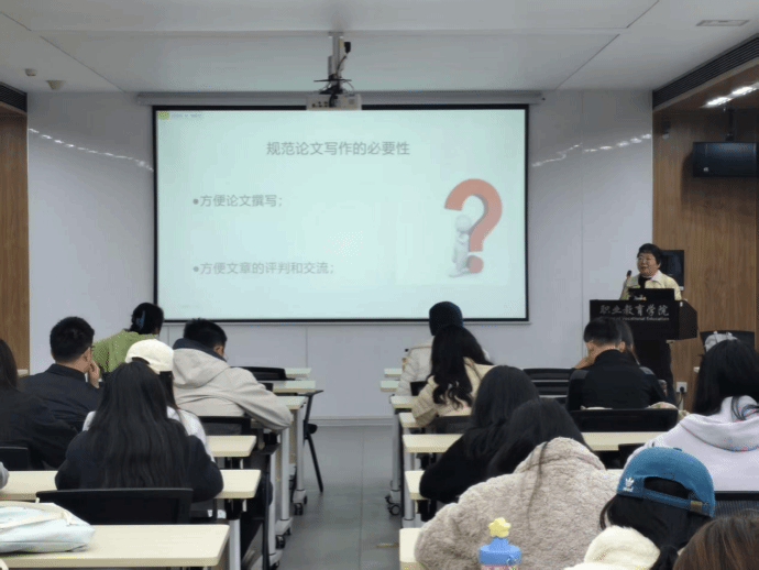 本次讲座内容详实、逻辑清晰,既有理论高度,又具实践指导意义,有效增强了同学们对学术写作规范的理解与掌握。未来,学院将继续围绕研究生科研能力提升需求,开展更多高质量的学术训练活动,为培养具有严谨学风与创新精神的高层次职教人才奠定坚实基础。