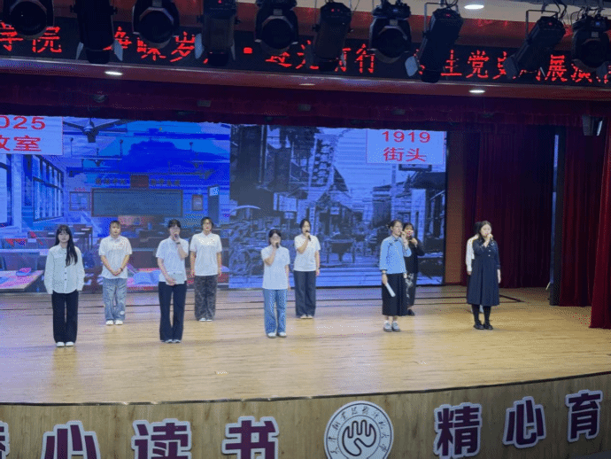 展演活动,入党积极分子分成八个小组,以百年党史为脉络,自编自导,以“真实历史事件重现”“红歌创造”“时空穿越”“诗歌朗诵”等多种形式,从革命先辈们为民族解放挺身而出的热血担当,到建设时期艰苦奋斗的初心坚守,再到新时代砥砺奋进的使命荣光,一个个鲜活的红色场景、一段段感人的革命故事在舞台上徐徐铺展。