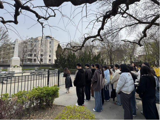 活动现场,庄严肃穆,革命烈士纪念碑巍然矗立,诉说着先辈们的英勇无畏与赤胆忠心。组织员李志婧向同学们讲述了天津十七烈士的英勇事迹,回顾了先辈们在艰苦卓绝的环境下,为了民族独立和人民解放,抛头颅、洒热血,用生命践行理想信仰的光辉历程。