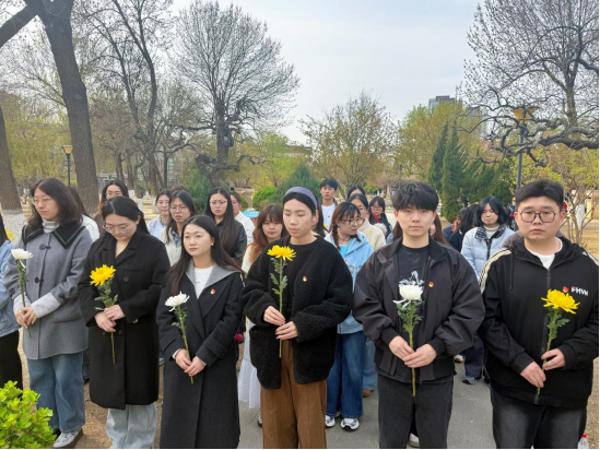 同学们整齐列队于纪念碑前,伴随着国歌,全场默哀三分钟。研究生党支部党小组组长带领大家重温了入党誓词。随后,大家依次手持洁白的菊花,缓步上前,深深鞠躬致敬,以最质朴的方式表达对革命先烈的追思与缅怀,告慰先烈英灵。